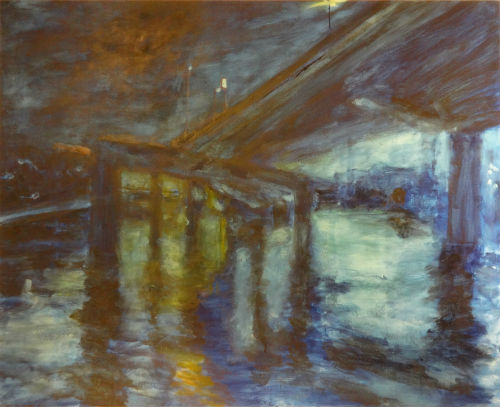 freeway 2016年12月 910×727 /F30 /木パネル画用紙水張り、水彩 こんな絵か写真を見てみたいと思って描いた。 "last looks"で最も暗い部分であり私にとっては一番身近で自然な景色を 表現しようと思った。